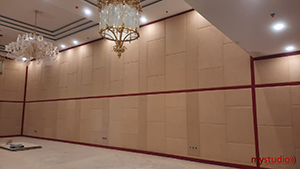 Partisi lipat akustik merupakan dinding partisi ruangan yang dapat dibuka-tutup, terbuat dari material-material akustik seperti mineral wool dan material lainnya sehingga akan meredam reverberation time berlebih di dalam ballroom.