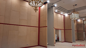 Sekarang, muncul pertanyaan lain. Bagaimana agar waktu dengung atau reverberation time ballroom dapat mencapai titik ideal tersebut? MyStudio memiliki beberapa solusi yang telah kami terapkan pada berbagai ballroom milik klien-klien kami, yaitu: