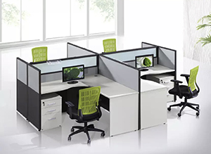 Di antara meja-meja tersebut terdapat papan partisi yang tingginya tidak sampai satu meter, mirip dengan meja pada warnet tanpa bilik/game net. Partisi dari cubicle tersebut dapat mengurangi volume suara yang dating dari arah depan dan samping.