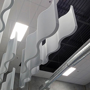 Bentuknya yang beragam menjadikan sound baffle tidak hanya meningkatkan interior akustik kantor, tetapi juga meningkatkan visual interior ruangan kantor.